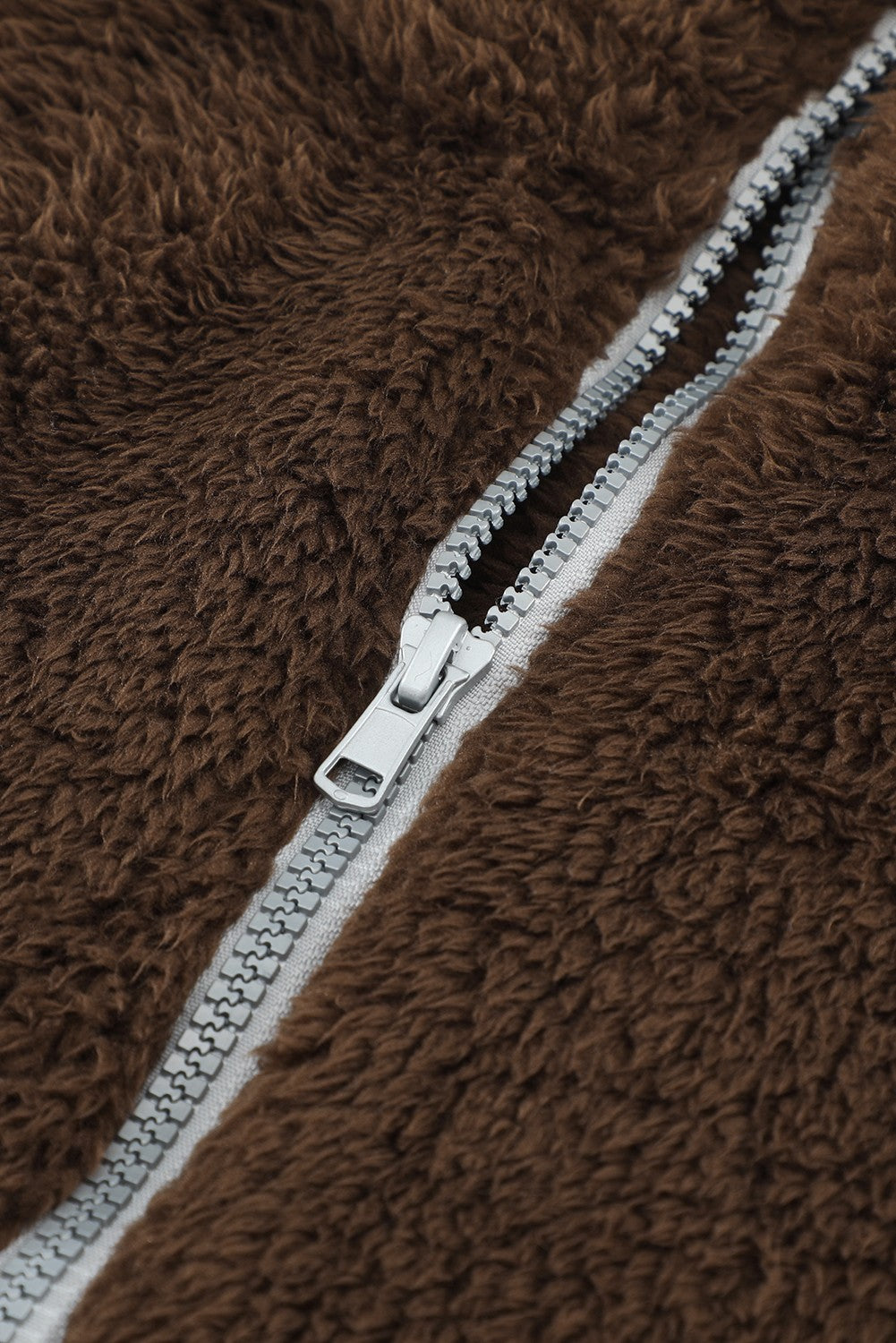 Color Block Half Zip Long Sleeve Fuzzy Sweatshirt