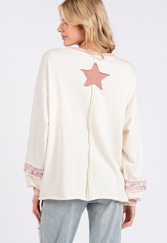 SAGE + FIG Peace & Star Patch Contrast Round Neck Sweatshirt
